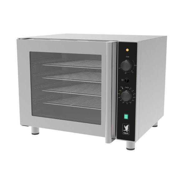 The FE4M countertop convection oven has a capacity of 4 x 1/1 GN shelves, with 80mm between shelves. Features easy to use manual controls, including 60 minute timer and alarm. The oven door has a double glass panel with an LED internal light for easy monitoring of cooking progress. The internal glass panel can be easily removed for cleaning. The oven is supplied with a 13A plug on a 1.8m cable, making it ideal for any application, from a small café’s main oven to offering additional capacity to a larger kitchen. Fixed or mobile stands are available, while units can be easily stacked to provide twice the capacity within the same footprint.