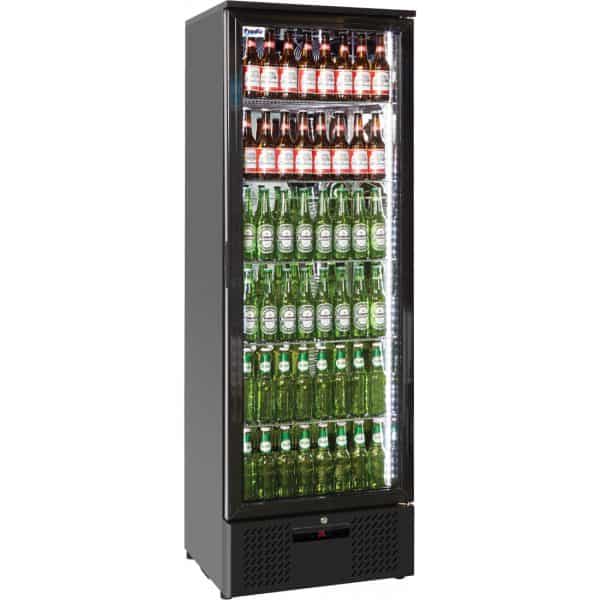 The NT10HC by Prodis features a hard wearing black powder coated exterior and a breath taking mirror finish interior which draws the customer’s eye to the cooler. The cabinet is fitted with pure white energy efficient twin vertical LED lighting to brilliantly illuminate the contents and benefits from forced air cooling for rapid cooling. 5 adjustable chrome shelves offer the flexibility to store any size of bottle and a lockable door adds security. Also available as an option is a scalloped wine shelf for high capacity wine storage.