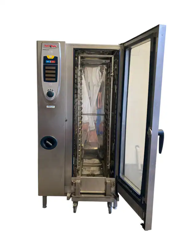 Rational SCC are considered to be one of the best and most advanced combi ovens on the market and they are ideal for high-output kitchens who demand the best quality. This self-cleaning and cooking oven is designed to provide reliable and efficient results. Fully serviced by Rational engineers, this oven is ideal for any production ktichen or restaurant looking for a reliable and efficient cooking solution. Dry Heat features making it ideal for baking and slow roasting, and steaming for potatoes and vegetables.