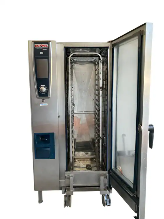 Rational SCC are considered to be one of the best and most advanced combi ovens on the market and they are ideal for high-output kitchens who demand the best quality. This self-cleaning and cooking oven is designed to provide reliable and efficient results. Its limescale treatment with Care Control ensures optimal performance every time. Fully serviced by Rational engineers, this oven is ideal for any production ktichen or restaurant looking for a reliable and efficient cooking solution. Dry Heat features making it ideal for baking and slow roasting, and steaming for potatoes and vegetables.